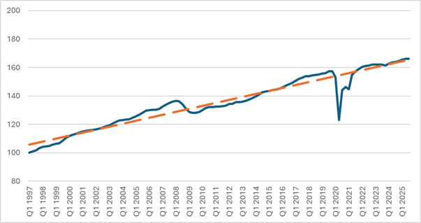 If AI were already replacing labour at scale, productivity growth would be going up. Rather, there's been no notable increase: